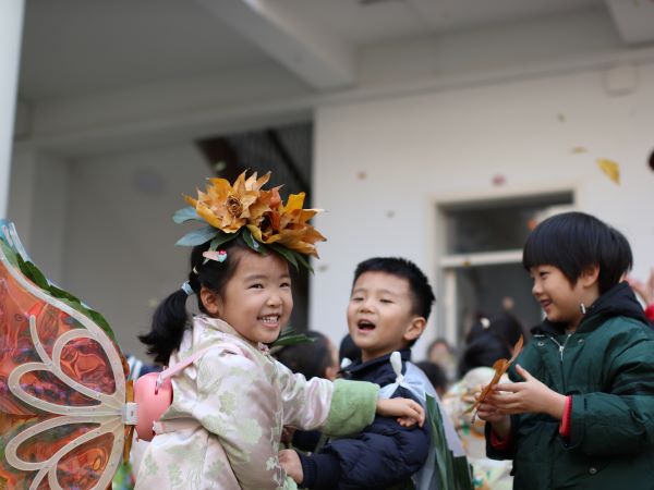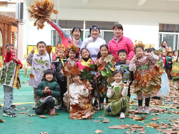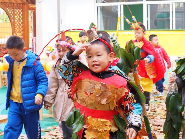 随着走秀音乐的响起,在充满梦幻色彩的落叶毯上,孩子们踩着节奏走来了。看,他们是充满活力树叶小野人,穿着各式各样的树叶披风、树叶战袍,头戴树叶皇冠;此时,每一位宝贝都是全场的焦点。还有树叶小精灵,戴着他们的树叶翅膀,面带笑容走向观众。