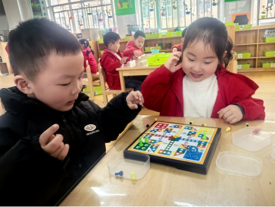 丰富的材料为孩子们提供了探索、交往、合作的机会。瞧孩子们操作的多认真呀!在自主探究区域游戏活动中,孩子们兴趣盎然、专注投入、自由快乐,通过自我尝试的方式进行主动探究,在与游戏材料的不断“对话”中获得新经验,展现出自由、自主、愉悦、创造的游戏状态。