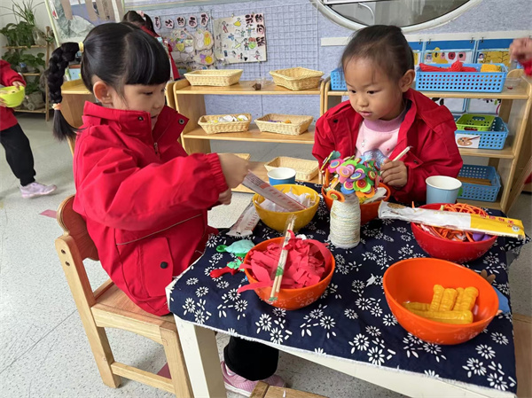 每一种材料,每一隅区角,都蕴藏着成长的种种可能。益智区、科学区一个充满魔力的神奇地方,孩子们在这里探索、思考、创造;纸杯、奶箱、木板......丰富多样的积木搭建成孩子们心中的梦幻**;毛线、彩泥、颜料、废旧材料,摇身一变成为一件件小小艺术品。孩子们在奇思妙想间,碰撞出点点童趣与惊喜。