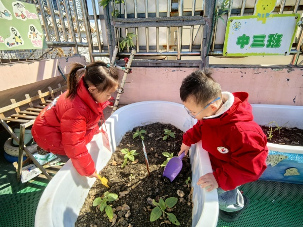 亲近自然、探索自然是幼儿的天性。在幼儿园的环境教育中,植物角以及小菜园是大自然的缩影,它不仅具有绿化班级、美化环境的作用,还是幼儿了解认识自然的窗口,更是幼儿探索、观察、实践的有利场所。近期,合肥市大西门幼儿园教育集团总园中三班开展了“我种植我快乐”的主题活动,旨在培养幼儿爱护大自然、亲近大自然的意识,让孩子在种植中体验到责任感。