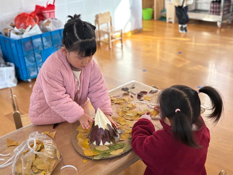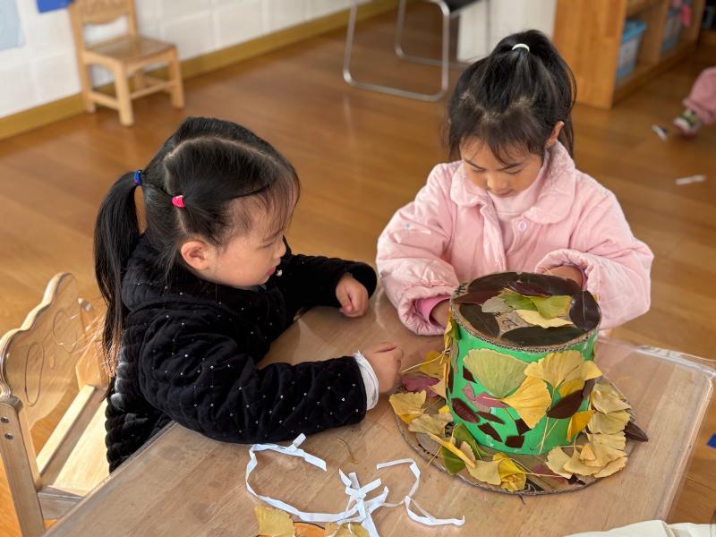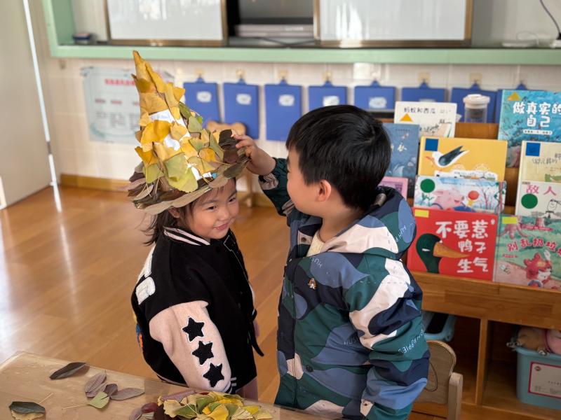 小手拾秋色,落叶变“帽子”