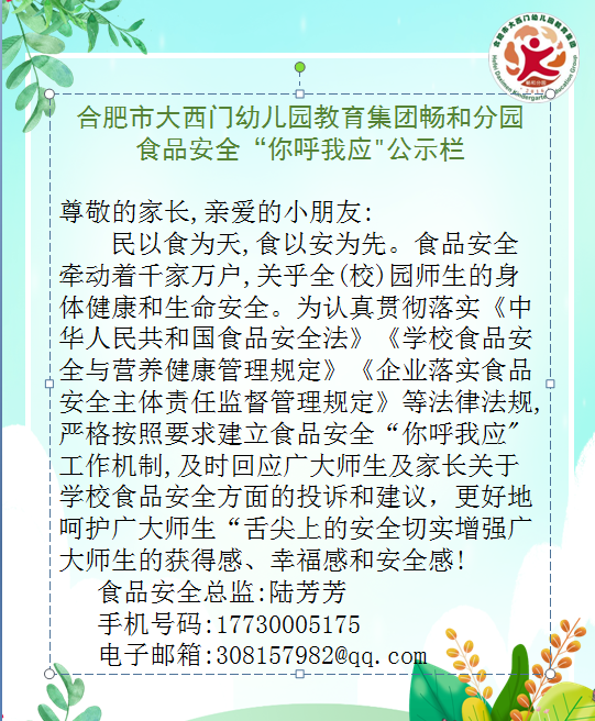 【公示信息】畅和分园:食品安全“你呼我应"公示栏