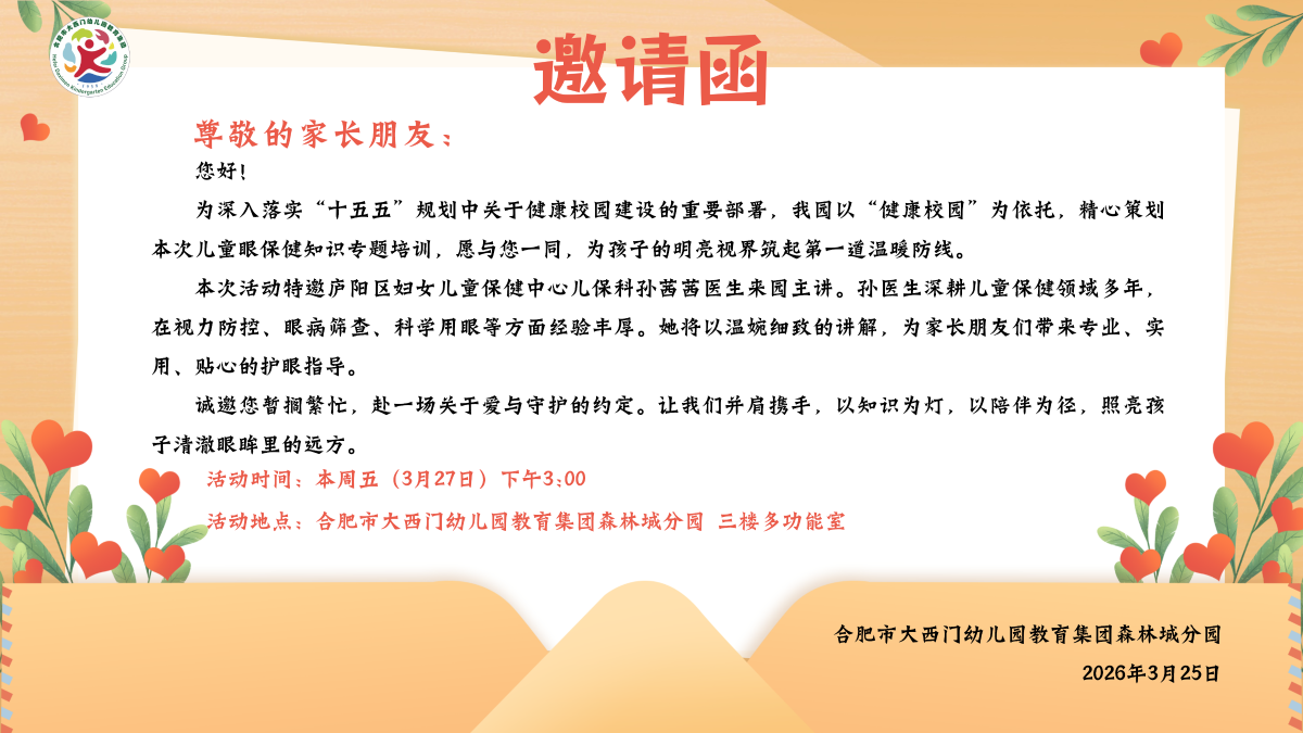 【邀请函】森林城分园:幼儿科学护眼专题讲座