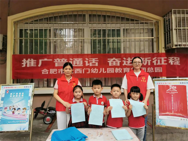 为深入学习宣传贯彻党的二十大精神和习近平总书记关于语言文化的重要指示精神,营造学习使用国家通用语言文字的浓厚氛围,在第26届全国推广普通话宣传周之际,合肥市大西门幼儿园教育集团总园以“推广普通话,奋进新征程”为主题,开展了一系列推普活动,激发和带动全园师幼及家长讲普通话、写规范字。