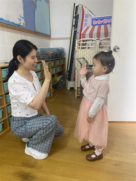 小班的孩子们用稚嫩可爱的声音学说:“老师你好!……谢谢阿姨!……小朋友再见!”,孩子们热情洋溢又标准的普通话响起在幼儿园的每个角落。