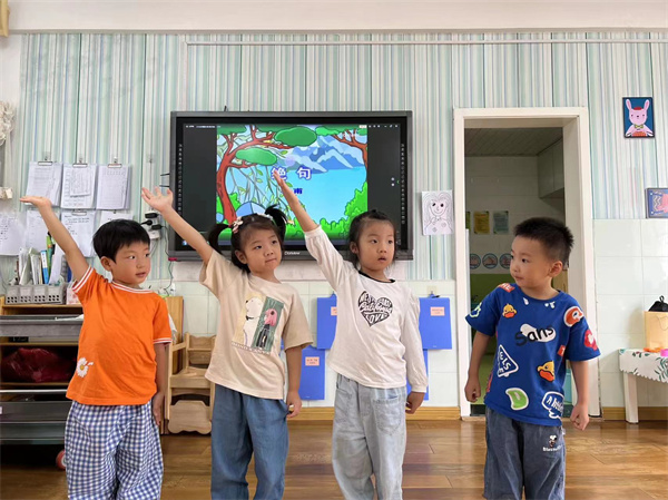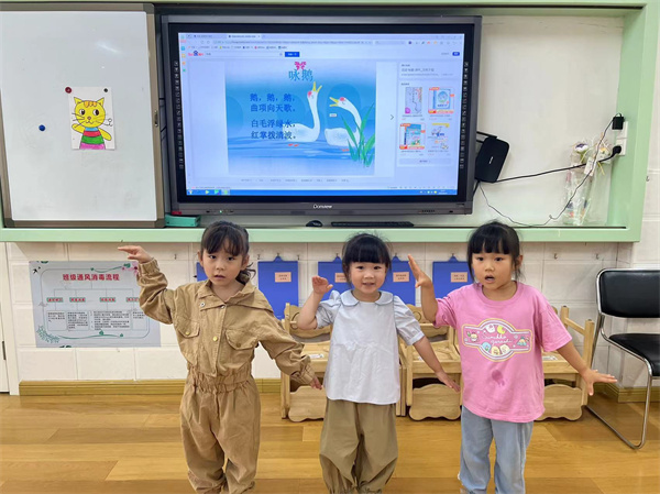 看!大班的孩子们声情并茂、绘声绘色地表演着,获得了小伙伴们的一致好评。活动中,孩子们想唱、敢表现、喜欢演,增进了同伴间的交流,进一步体会到了说普通话的重要性。