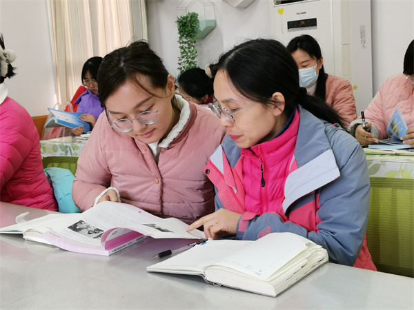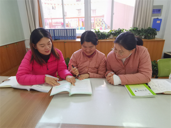 知行不辍,日益精进。首先赵老师带领全体教师共同研读最新版的上海市学前教育教师参考用书,这套教材理念新、思路活、弹性大、材料实,注重幼儿发展的课程和教育活动的低结构性、教育活动内容选择和生成的呈现方式,对每个年龄段的幼儿指导进行了深入的解读。教师们从教学目标的制定、材料的准备、环节的设计等方面进行研讨和学习,发现该教材利于引导幼儿利用已有的知识与经验,主动探索知识的发生与发展。