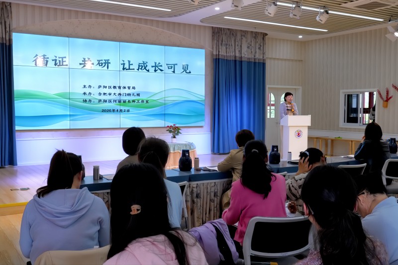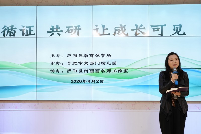 为深入贯彻《“合肥好课堂”培育工程行动计划》的精神,引导区域内教师聚焦课堂质量,同时深化区域教研改革,聚焦实践问题进行循证研讨。2026年4月2日上午,由合肥市庐阳区教育体育局主办、合肥市大西门幼儿园承办、庐阳区何丽丽名师工作室协办的庐阳区幼儿园“好课堂”暨教研开放活动(第二期),在合肥市大西门幼儿园教育集团森林城分园顺利举行。本次活动以“循证 共研 让成长可见”为主题,汇聚全区幼教同仁,通过课例展示、现场教研等形式,共探幼儿教育高质量发展路径,庐阳区教体局教研员毕大华莅临指导。