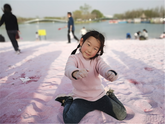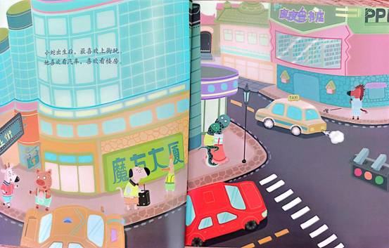 她喜欢看汽车,喜欢看楼房。