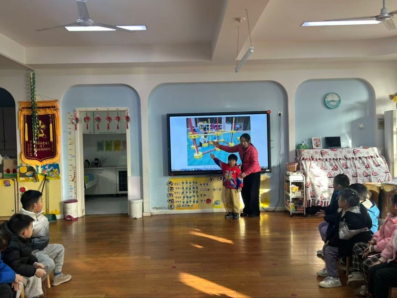 分享环节,孩子们勇敢上台:“大炮不伤人,我们都戴了头盔!”“小车轮子不牢固,推着推着就要加固一下。”