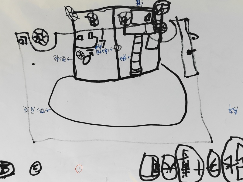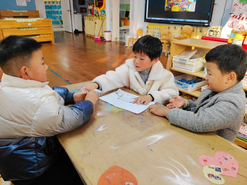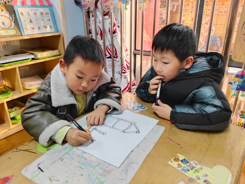 孩子们自由结伴,叽叽喳喳敲定创意:大炮组要搭保护大家的超级大炮,小车组盼着车子跑得快、跑得稳,鱼塘组想让小鱼乖乖待在池塘里,还有蛋糕店组、房子组等等,小设计师们趴在桌上画设计图,炮筒、车轮、鱼塘跃然纸上。
