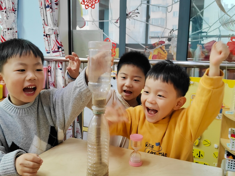 这场沙漏探索之旅,满是成长的小欢喜。孩子们从遇事急躁到主动思考原因,在筛沙、打孔、校准的实践中学会分工合作、清晰表达,真切感受到科学的乐趣;老师全程陪伴支持,不急于给出答案,而是跟着孩子的节奏试错、寻解,在平等互动中更懂孩子,也提升了支持幼儿探究的能力。