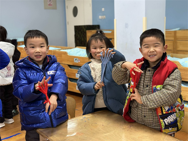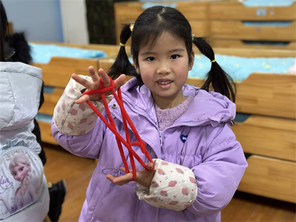 一根细长且普通的小绳,想象方式和翻动方法不同,呈现样式也会千姿百态,真可谓妙趣横生,其乐无穷。在翻绳游戏过程中,孩子们乐于讨论、分享、学习,在发现问题时能积极主动想办法解决问题。不仅锻炼了孩子们的手指灵活性,提高了手眼协调能力,还增强了同伴间的协作能力,体会到与人交往的乐趣,更感受到传统游戏的魅力。