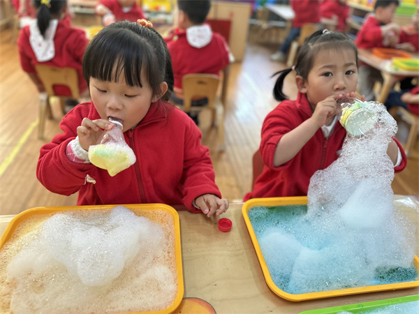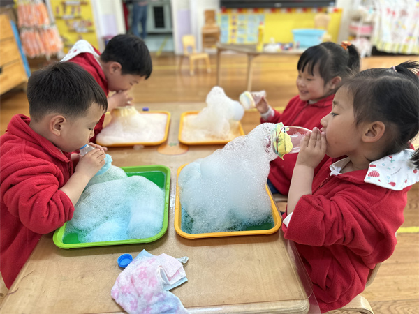 “吹泡泡,吹泡泡,一吹吹个小泡泡。”孩子们对泡泡充满无数的好奇,为了满足孩子的求知欲,培养爱科学爱探索的精神,2023年4月10日,合肥市大西门幼儿园教育集团畅和分园小二班开展了有趣的科学小实验“彩虹泡泡龙”。