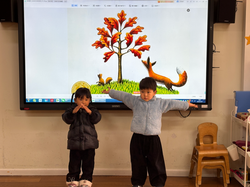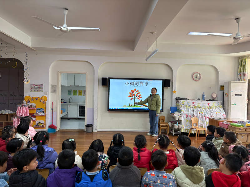 在绘本阅读《小树的四季》中了解小树因害怕失去紧抓叶子,无法茁壮生长,而勇敢放手顺应自然规律后,长成了参天大树。这个有趣又有深意的故事,让孩子更加了解了树木的生长过程和变化。