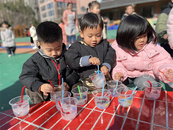 美丽的冰花承载着孩子对大自然无限的幻想与热爱,也是开启孩子主动探索大自然的大门。科学与美丽并存,让孩子们拥有一双发现美的眼睛,探究大自然的神奇与美好。我们用小朋友喜欢的方式,感受着冬天,温暖着冬天。(撰稿/初审:李倩 摄影:李梦雨 复审:庞志荣 终审:余学琴)