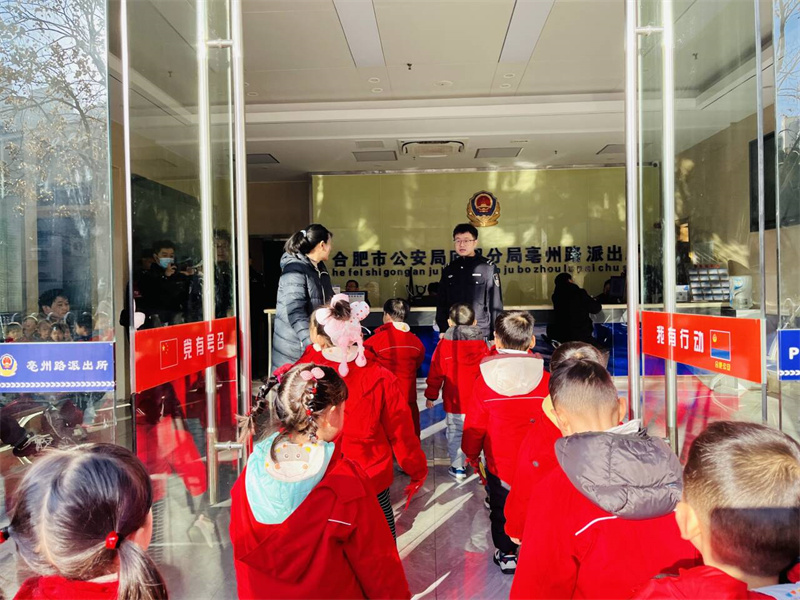 为迎接中国人民警察节,厚植幼儿法治安全意识,2026年1月9日,合肥市大西门幼儿园教育集团畅和分园中二班的萌娃们,在法治副校长李新华的邀请下,走进亳州路派出所,与民警叔叔阿姨们共度特别时光。