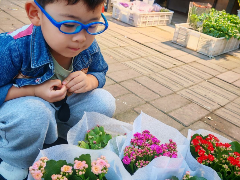 喆喆:“我也喜欢花!我也希望教室里有很多小花!”