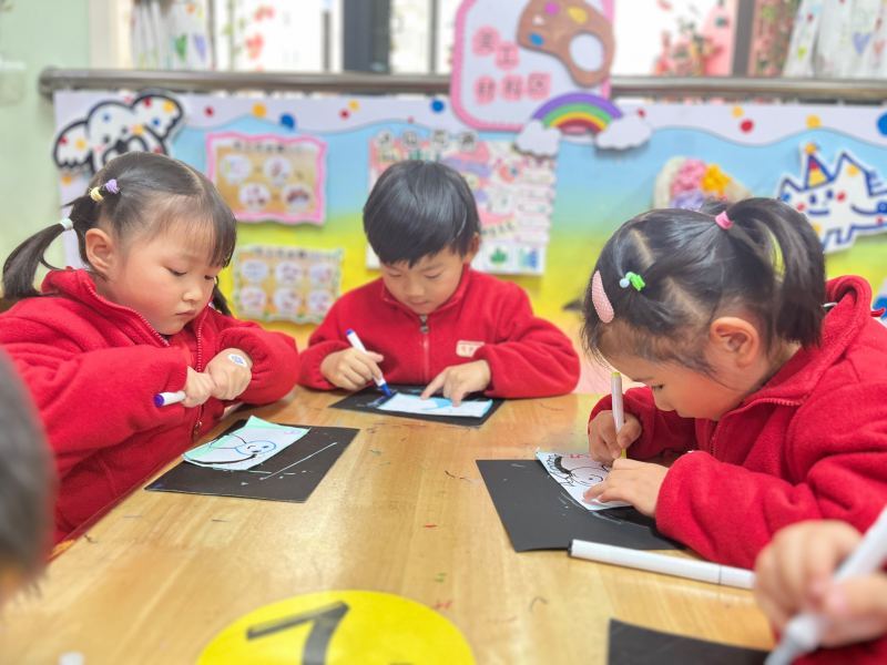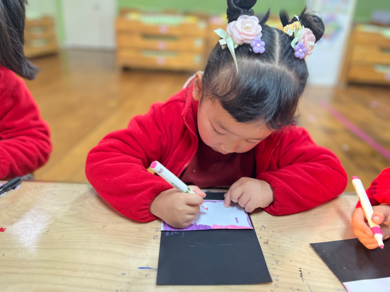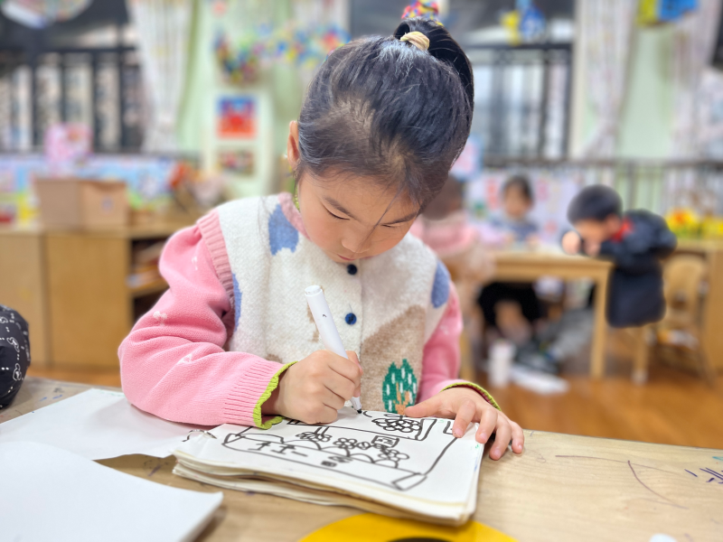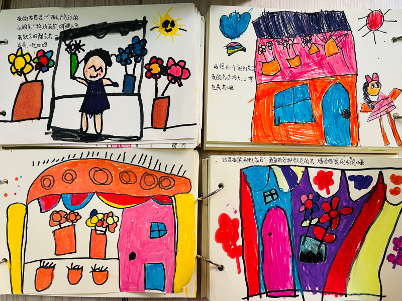 孩子们拿起小画笔开心地画着自己心里的花店每一笔颜色、每一条线都在讲着对花店的美好期待。