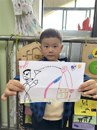 弹弓游戏开始前,为了加强弹弓游戏的趣味性,老师带领孩子们展开集体讨,孩子们踊跃地提出了自己的想法,有射击纸箱、小玩偶、轮胎等弹弓游戏。随后,孩子们把自己设计的弹弓游戏都一一绘画出来,并互相进行了分享和交流,孩子们迫不及待地想去玩一玩啦。