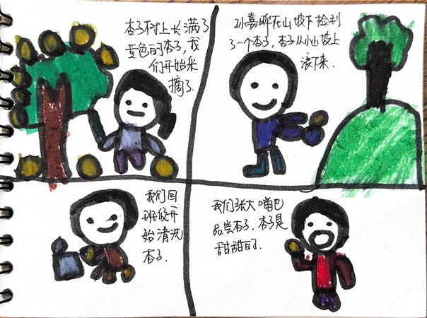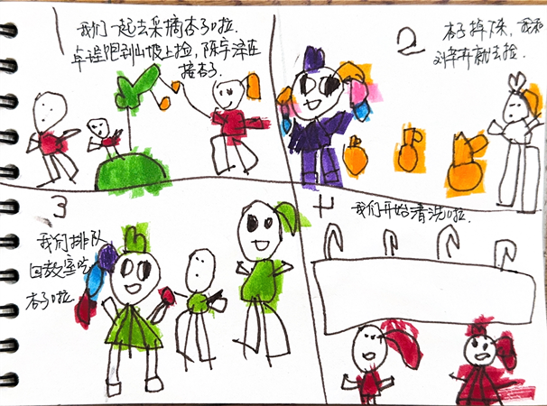 采摘过程充满了快乐,有趣的采摘故事是孩子们今日快乐的源泉。孩子们用自己的方式记录采摘的过程。