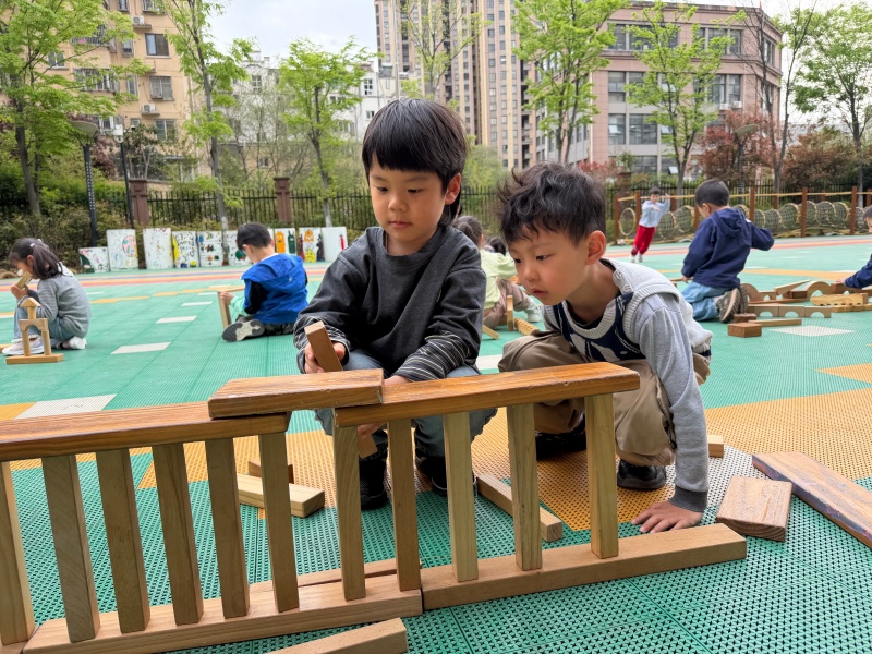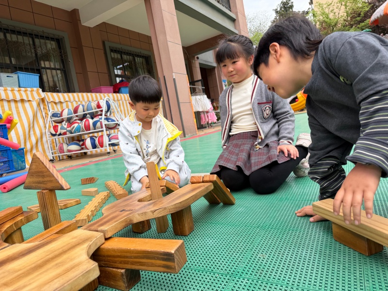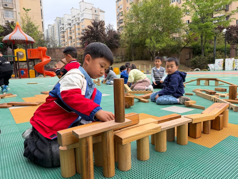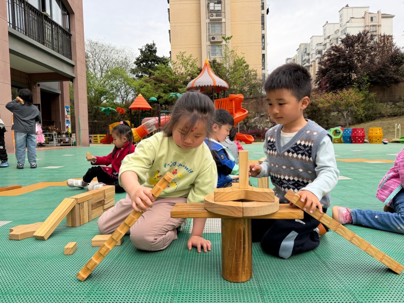 春风和煦,暖意融融,为锻炼幼儿动手操作能力与团队协作意识,近日,2026年4月7日,合肥市大西门幼儿园教育集团畅和分园中一班的小朋友们在户外场地开展了户外木质积木建构活动。