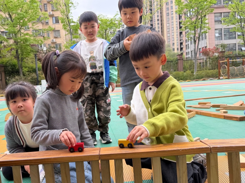 经过齐心协力的努力,一座座造型各异的积木桥梁稳稳矗立在户外场地上。孩子们看着自己亲手搭建的作品,脸上洋溢着自豪的笑容,还开心地模拟车辆、行人过桥,现场满是欢声笑语。
