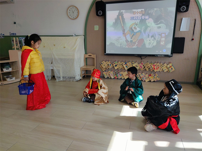 孩子们穿戴上服饰,演绎《三借芭蕉扇》《三打白骨精》等经典片段。孩子们通过生动的肢体语言和对话,将角色性格展现得淋漓尽致。