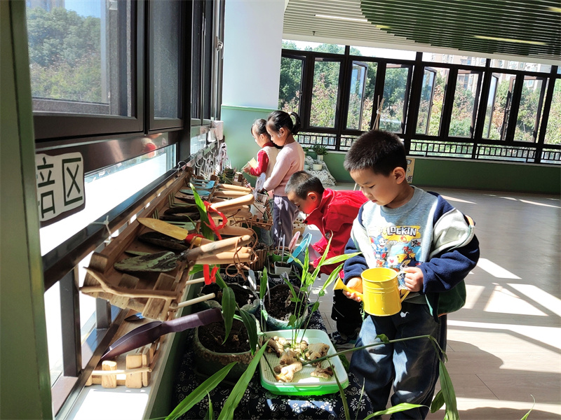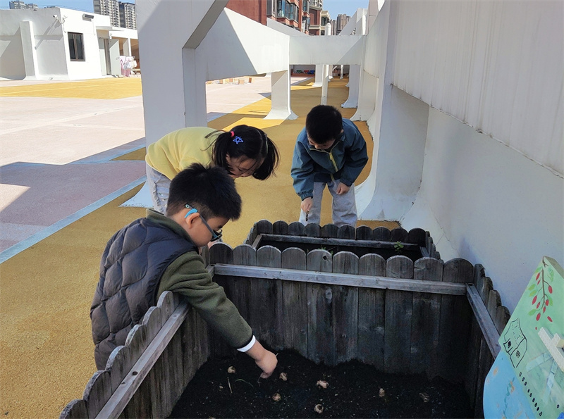 为增强仪式感,孩子们亲手设计值日生标牌,用“水壶”“小扫把”等图画符号直观标示职责,建立起清晰的责任标识系统。随后,孩子们热情投入行动:在植物角和小菜地,他们观察种子、合作种植,到处生机勃勃;在教室各个角落,都能见到他们忙碌的身影。