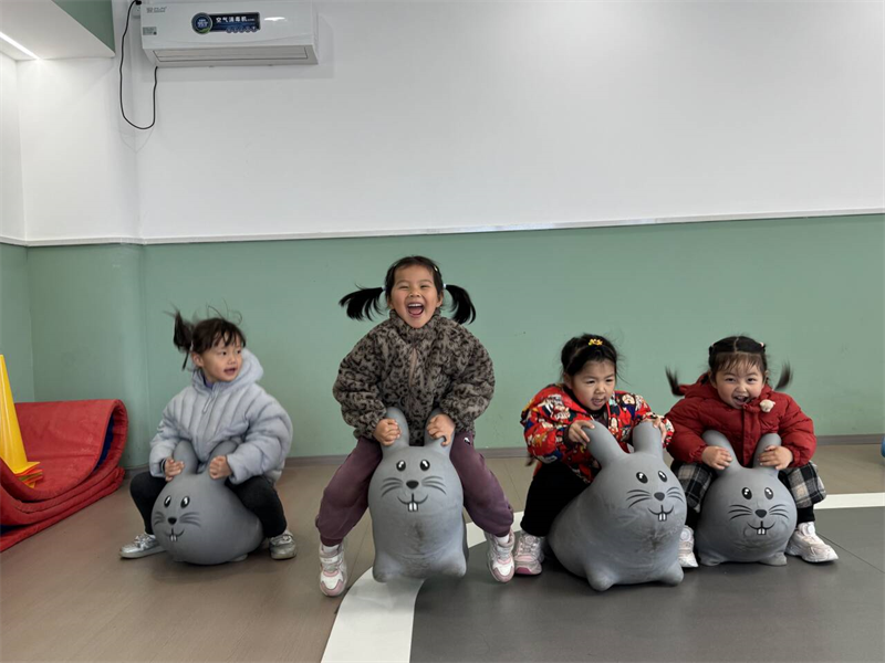 活动开始前,老师带领孩子们跟着轻快音乐做热身操,扭一扭、跳一跳、拉一拉,充分活动关节,为运动做好准备。在充分热身后,化身小小探险家,开启体能闯关:大家低头弯腰,小心翼翼地钻爬过五彩斑斓的隧道,仿佛穿越奇妙的运动山洞;稳稳踏上平衡木,小手张开保持平衡,一步一步勇敢向前;紧紧地抓住绳网,小心地踩在网结上,一步一步向前挪动;牢牢地坐在跳跳兔上,用脚用力蹬地,让小兔子一蹦一跳地向前移动,感受运动带来的活力与喜悦。