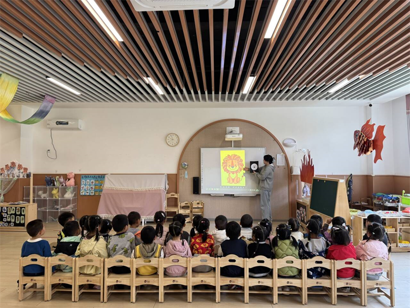 活动伊始,老师通过生动的图片引导幼儿观察狮子的外形特征,重点感知狮子蓬松多彩的鬃毛,激发孩子们的创作欲望。孩子们认真倾听,积极分享自己的发现,为创作做好了充分准备。