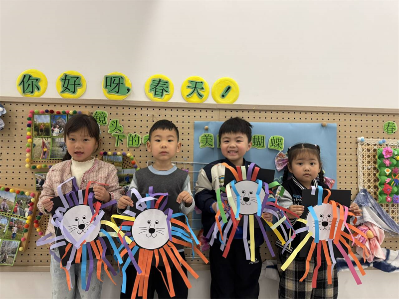 创作环节中,孩子们化身小小艺术家,拿起彩色纸条,认真粘贴。孩子们在过程中,不仅锻炼了手部小肌肉,更在色彩搭配中提升了审美能力。当一幅幅充满童趣的作品完成后,孩子们兴奋地举起自己的“小狮子”,脸上洋溢着满满的成就感与自豪感。