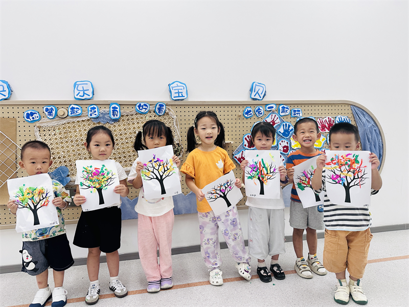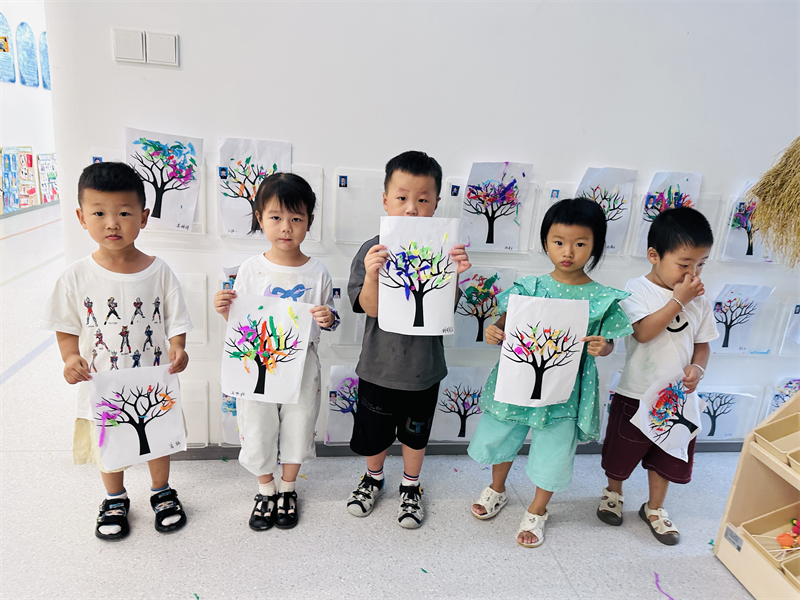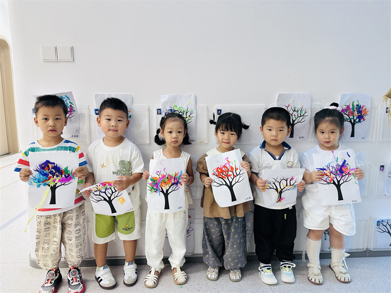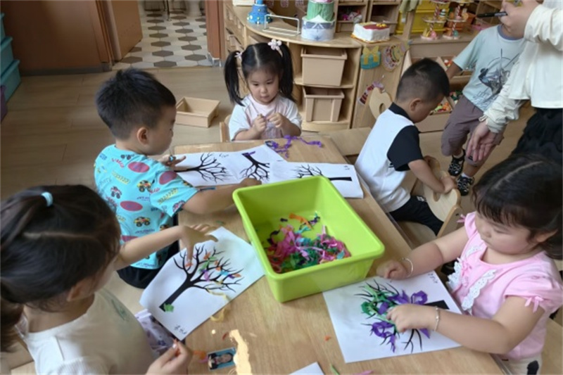 在孩子们的巧手操作下,大树焕发生机,变成了一棵棵漂亮的彩虹树。