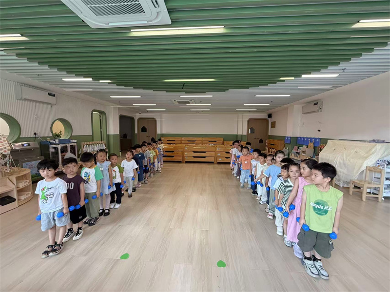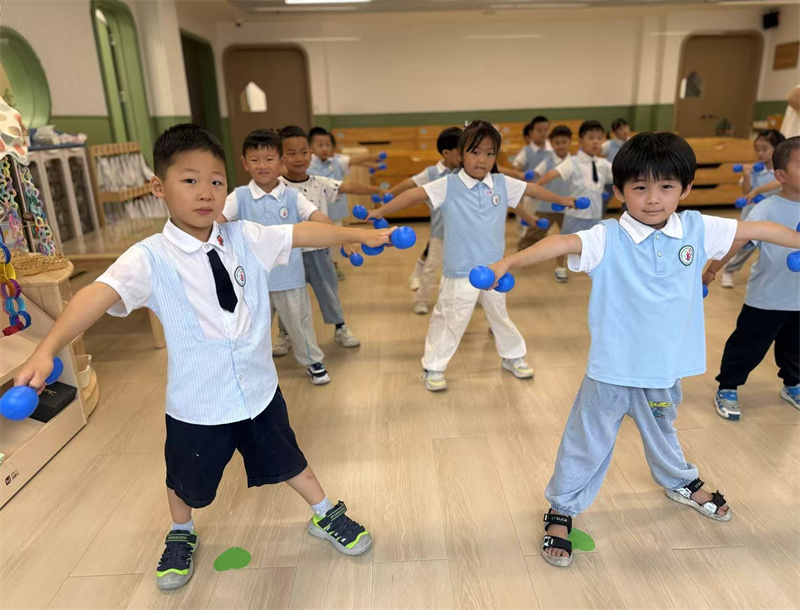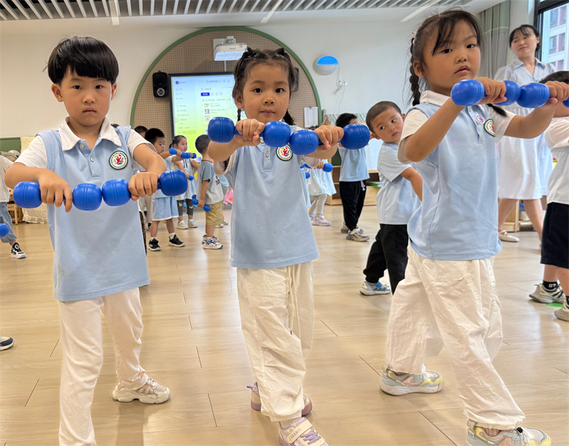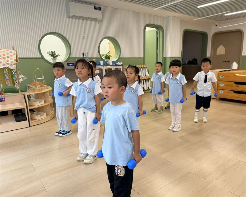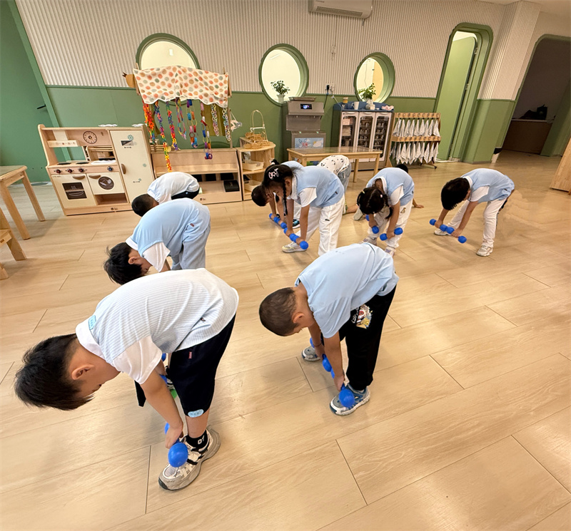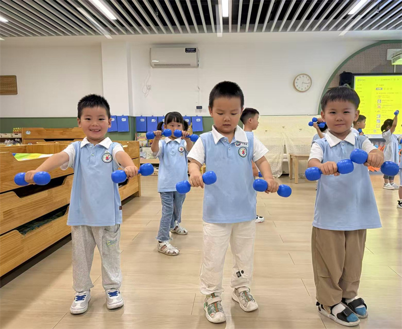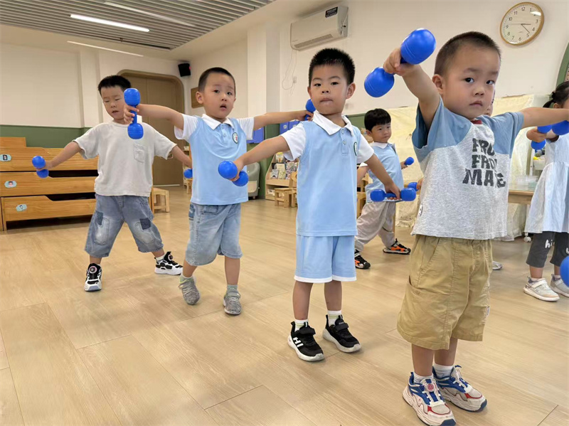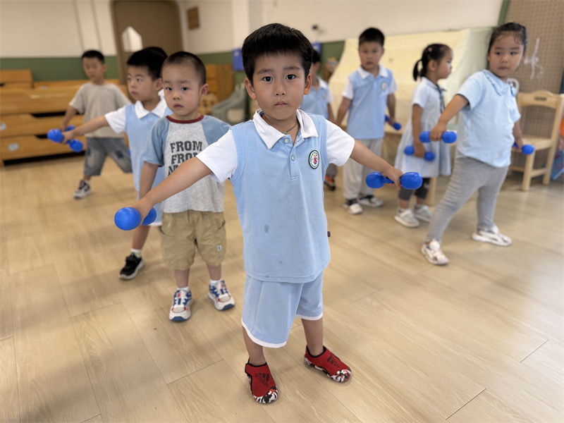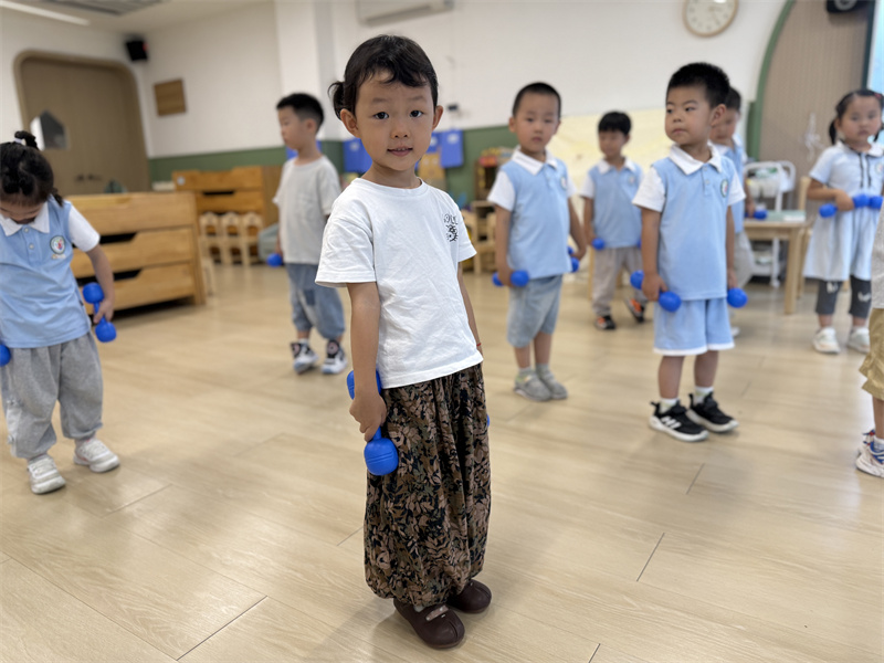 中二班:萌娃挥哑铃 活力满中班