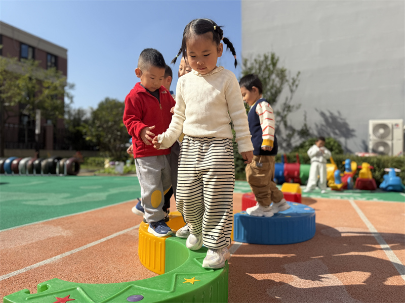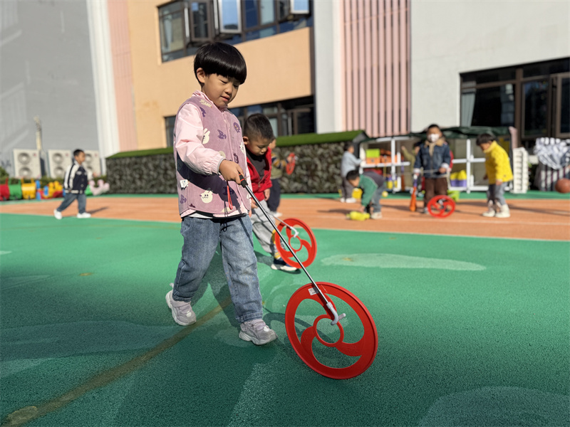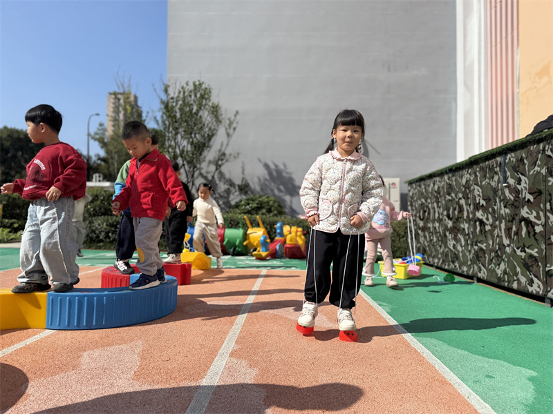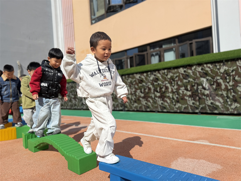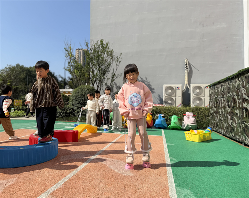 瞧!篮球在孩子们的小手间灵活弹跳,大家比拼数量、相互鼓劲,欢声笑语不断;平衡木前,孩子们稳步前行,动作愈发娴熟,专注力与平衡能力稳步提升;踩高跷、玩风火轮的场地热闹非凡,掌握技巧的孩子们动作流畅利落,尽显灵动活力。