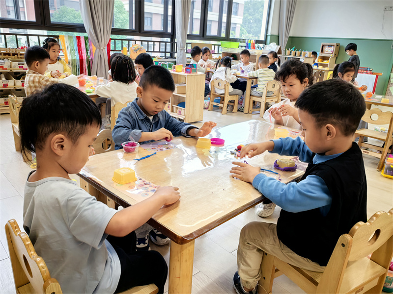 2025年10月15日上午,合肥市大西门幼儿园教育集团固镇路分园中一班开展了手工活动,孩子们以月饼盒为“蛋糕底座”,搭配彩泥、纽扣、毛球、彩色亮纸等材料,亲手制作出创意十足的 “环保彩泥蛋糕”。