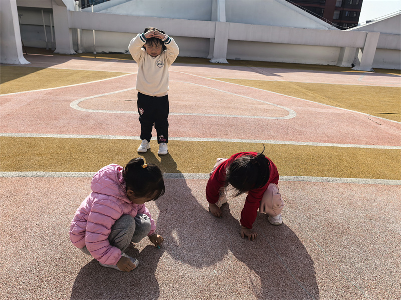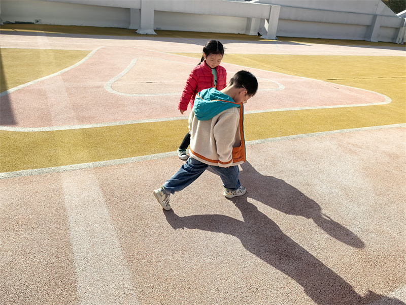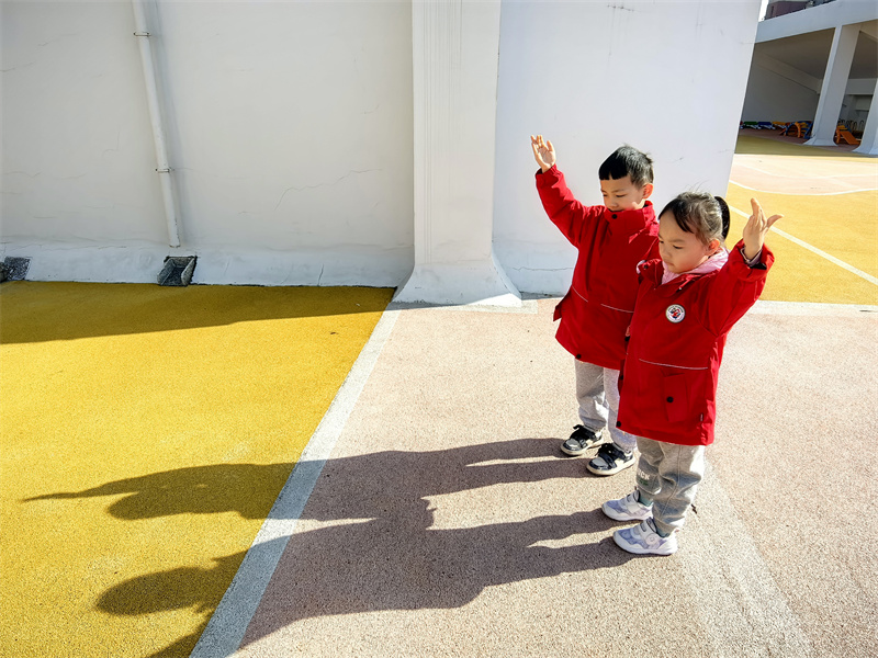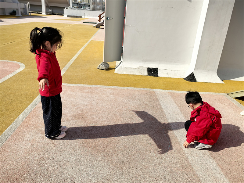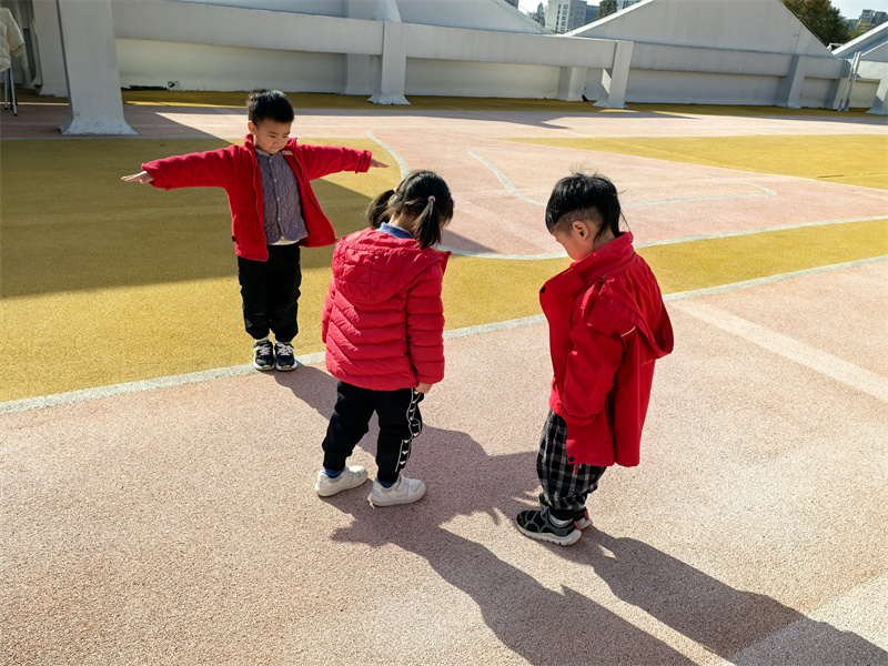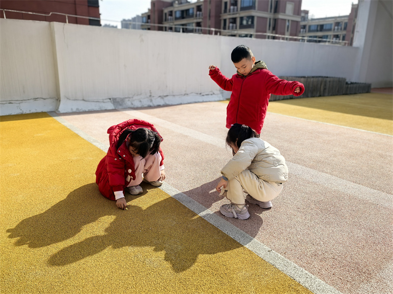 户外的“影子彩绘”活动格外惬意,孩子们蹲在地上,把朋友的影子拓印在地上,再添上斑斓的色彩。踩影子游戏更是将快乐推向高潮,大家追着同伴的影子奔跑,踩住的瞬间便开怀大笑,阳光洒在脸上,与地上的影子相映成趣。