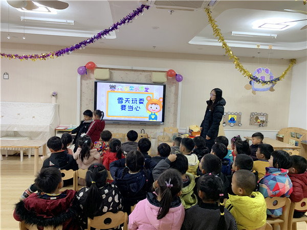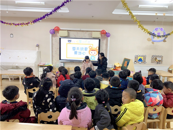一夜大雪,素裹银妆。白茫茫的雪花对于孩子们来说是新鲜又极为有趣的事物,着实让孩子们兴奋至极,但是有的小朋友来园后对老师说:“我都摔一跤,好痛哦。”、“我的小手都要冻僵了。”为了切实加强幼儿的冬季安全教育,增强幼儿的安全意识,让幼儿了解和掌握冬季安全常识,提高自我保护能力,2018年1月9日,大西幼教育集团森林城分园大二班的孩子们开展了“冬季防滑防冻”安全教育活动。
