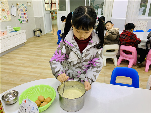 陶行知提出了“生活即教育”理念,生活决定了教育,教育不能脱离生活,教学做合一的理念。生活体验馆作为大西幼教育集团森林城分园的特色课程,深受孩子们的喜爱。2019年12月23日下午,生活体验馆里香味扑鼻,原来是大二班的小朋友们正在制作美食呢!