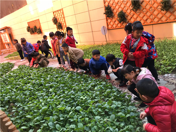 11月22号下午,大二班的孩子们排着整齐有序的队伍来到了“蔬香小圃”种植区,一块块菜地里种的蔬菜可真不少,一眼望去满眼的绿色:有青菜、鸡毛菜、芹菜、大蒜……孩子们俯下身来用小手轻轻地抚摸这些蔬菜。随着年龄的增长,大班孩子的求知欲也随之旺盛起来,他们认认真真地观察各种蔬菜的颜色和形态,不时地还会凑近闻一闻蔬菜的气味,那模样可爱极了。