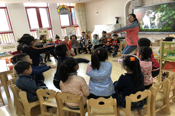 此次游戏活动老师在传统反应游戏“萝卜蹲”的基础上进行了改造,加入了小动物的角色,并以分组集体游戏的形式进行。