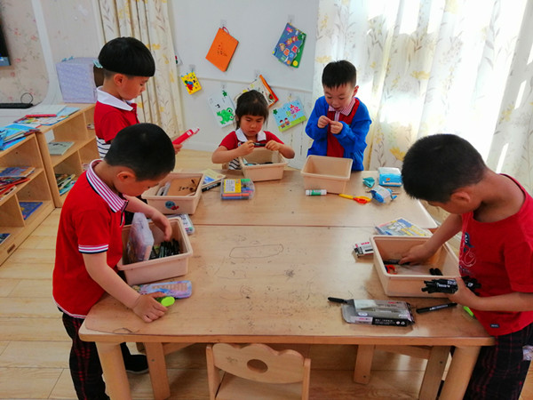 看,他们认真干起活儿来的架势,一点儿也不逊于大人,真不愧是能干的大班小朋友。从物体的体积大小,占用面积到它的长宽高矮,孩子们个个有序地将学习用品,整齐地摆放在自己的筐子中。通过培养孩子们良好的行为习惯,相信对孩子们来说一定会有所收获。