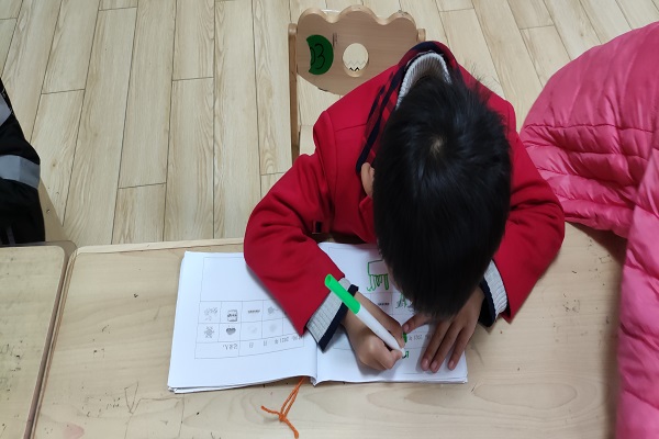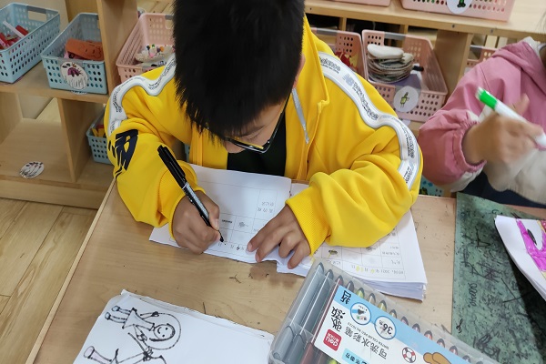 观察结束后幼儿回到班级,将自己刚刚观察到的植物生长变化在记录本上画下来,比如植物现在是什么颜色?是否变高了、变大了?孩子们通过自己手中的画笔将植物的变化细细记录下来。