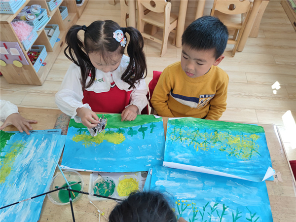 春天赋予了大自然彩色的优美画卷,让我们能领略到大自然的美丽,春日的油菜花也如同一幅幅优美的画轴铺卷而来。为了让幼儿感受春天的美丽,欣赏油菜花的美丽。2021年4月19日,合肥市大西门幼儿园教育集团森林城分园大二班开展了“油菜花开”的绘画活动。