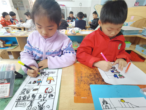 “春天来了,你们最想去哪个地方去春游?”“我想去爬山。”“去植物园看花。”“我想看长颈鹿。”……小朋友们纷纷表达自己的想法。接着小朋友们围绕“春游需要准备哪些东西?”这一问题展开激烈地讨论,“要带毯子”、“还有水杯”、“三明治”“帽子”等。通过小组讨论,小朋友们确定了春游计划表里要包含春游地点、出行方式、用品准备和春游规则。最后小朋友们开始用画笔设计自己的春游计划表。
