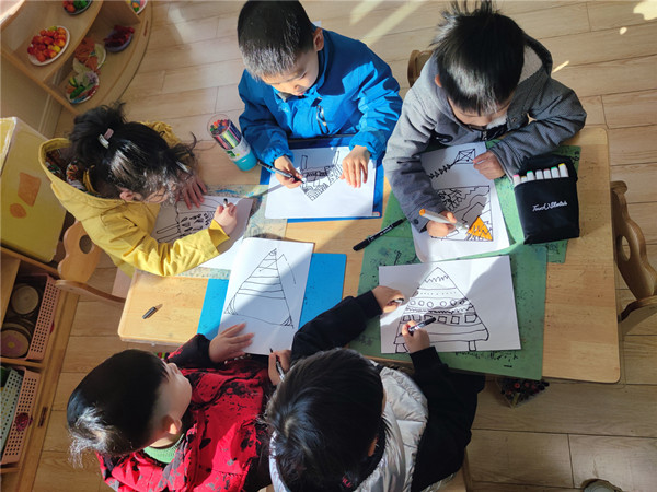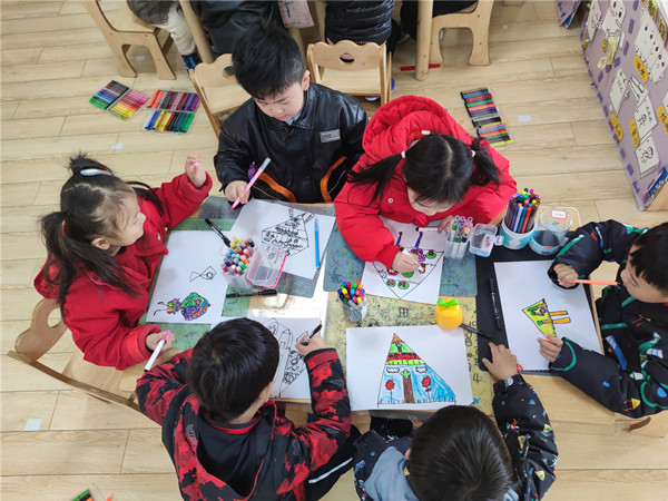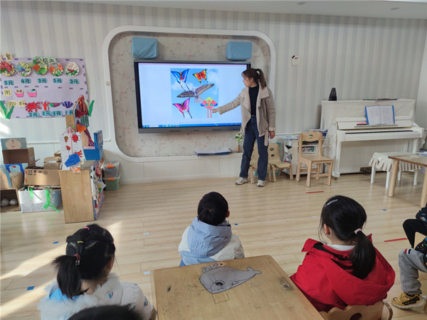 活动一开始,小朋友们通过欣赏各种各样的图片来了解风筝。接着,孩子们挥动手中的画笔,手绘出美丽的春日景象——特色风筝。放飞梦想和希望,将春天的喜悦和情趣发挥极致。其中,栩栩如生的动物、色彩斑斓的植物、亲切可爱的小动物等形象在他们的画笔下活灵活现,用颜色点缀创意,用图案装点天空。随后,孩子们还向同伴展示自己的风筝,并约好周末一起放风筝呢!