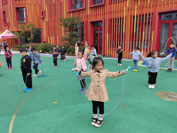 跳绳是一项传统的体育运动,能促进幼儿的身体机能、健康发育,提高幼儿手、脚、腕、肩等部位的协调能力的发展。为了增强幼儿体质,促进幼儿体能的发展,2020年10月20日,合肥市大西门幼儿园教育集团森林城分园大二班开展了户外跳绳活动。
