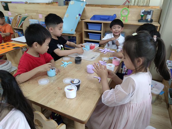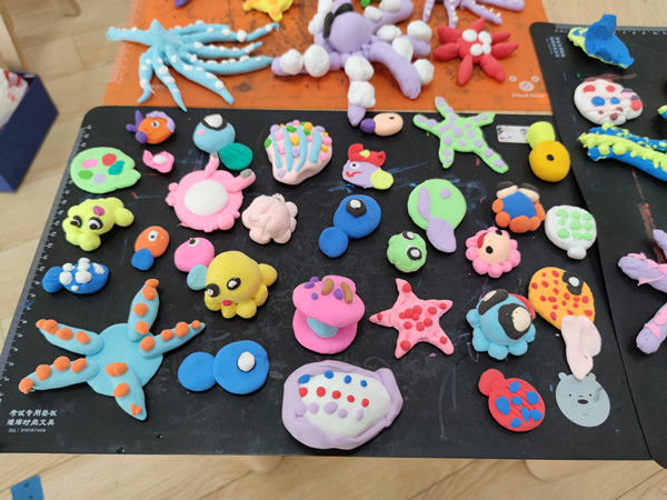 玩是孩子的天性,手的触觉是孩子接触生活中经验及知识的积累,因此触觉中的抓、捏、团、压、印、搓等,是孩子成长过程中重要的活动经验。为培养和发展幼儿的思维、想象、创造、审美、语言表达能力,2020年9月16日,大西门幼儿园教育集团森林城分园大二班开展了趣味粘土之海底大世界活动。