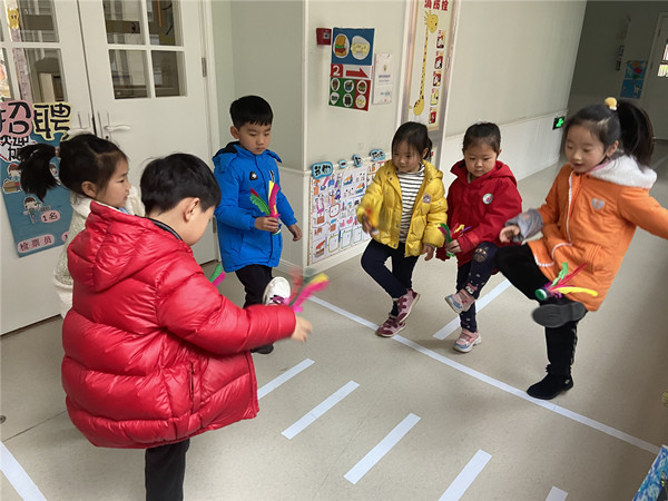 踢毽子游戏是我国一种民间游戏,玩这个游戏需要具备手、眼、腿、脚的协调能力。为了锻炼幼儿的运动协调能力和丰富幼儿体育活动,2021年3月17日下午,合肥市大西门幼儿园教育集团森林城分园大六班开展了“彩毽飞扬 快乐你我”民间体育游戏活动。