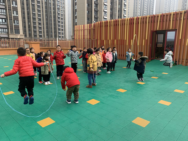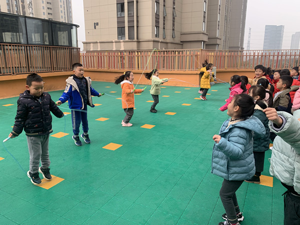 为了丰富孩子们户外活动的内容,促进幼儿体能的发展,加强晨间体育锻炼,展示幼儿健康的体魄,2020年12月3日,合肥市大西门幼儿园教育集团森林城分园大六班的小朋友在老师的带领下开展《“绳”采飞扬,快乐运动》的跳绳比赛活动。